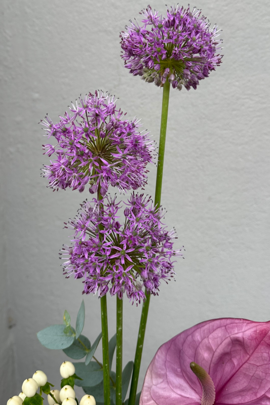 Mit gezielt eingesetzten Blüten wie Allium, Anthurium oder Nelken erzielst du eine viel stärkere Wirkung als mit überladenen Sträußen.