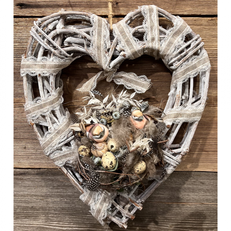 Gestalte deine eigene stilvolle Türdeko für den Frühling! Mit dieser einfachen DIY-Anleitung verwandelst du ein großes Holzherz in eine natürliche, liebevolle Frühlingsdekoration mit einem süßen Vogelnest.